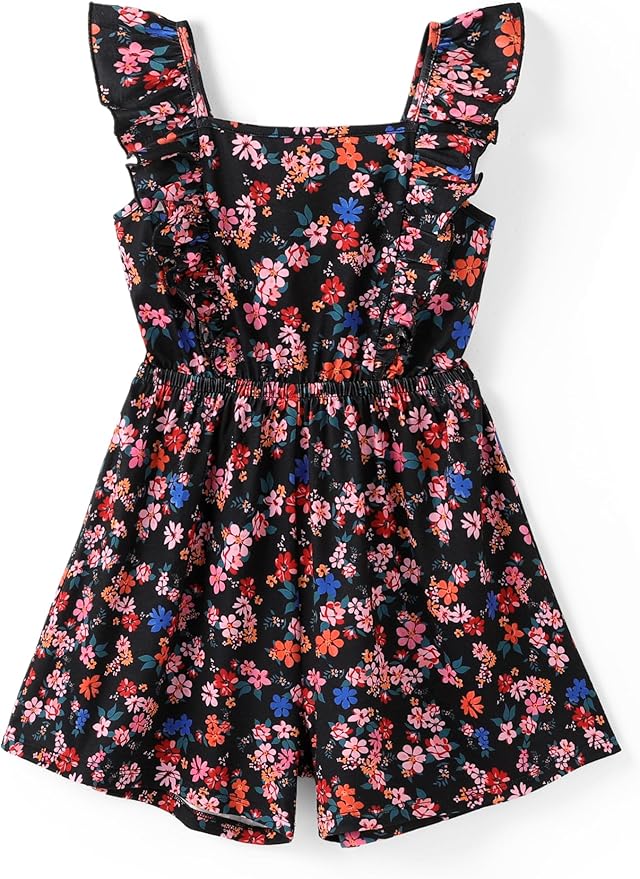 Girls Jumpsuit Asymmetrical Neck Ruffle Romper Casual Loose Shorts with Pockets Summer Outfits