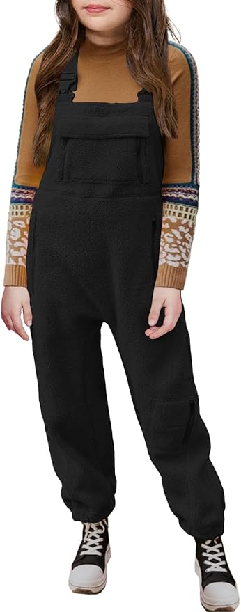 Girls Fleece Overalls Kids Warm Winter Loose Casual Jumpsuits with Pockets 5-14 Years