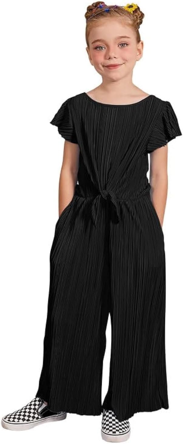 Girls Jumpsuit Kids Fashion Cap Sleeve Belted Wide Leg Romper One Piece Summer Outfits