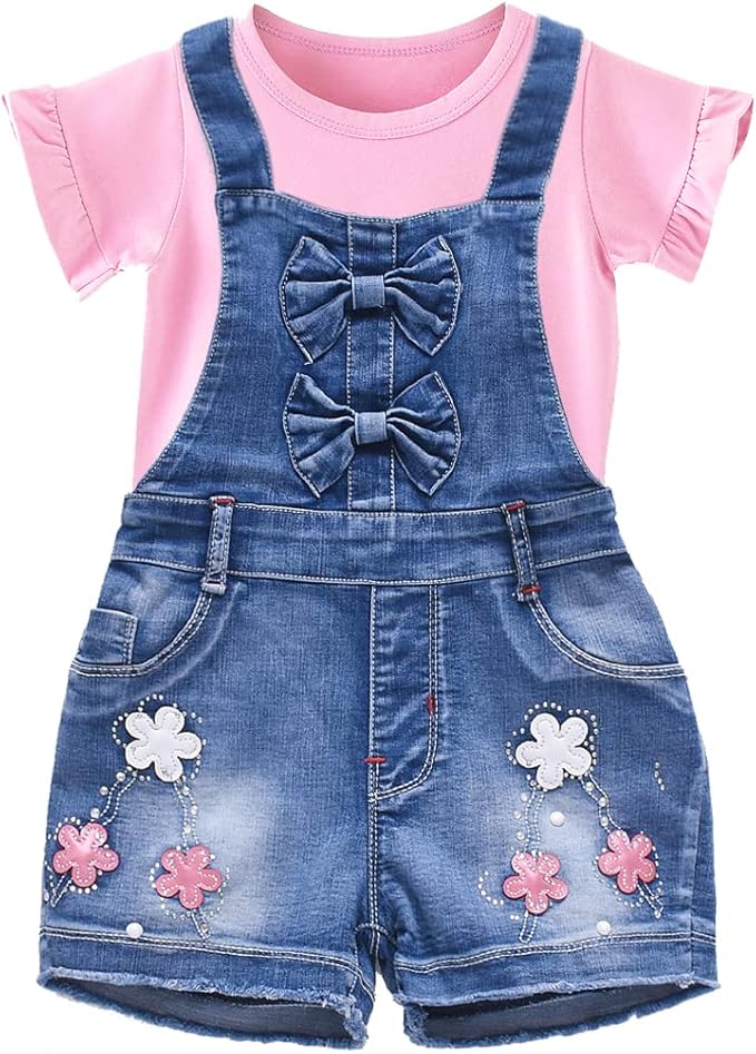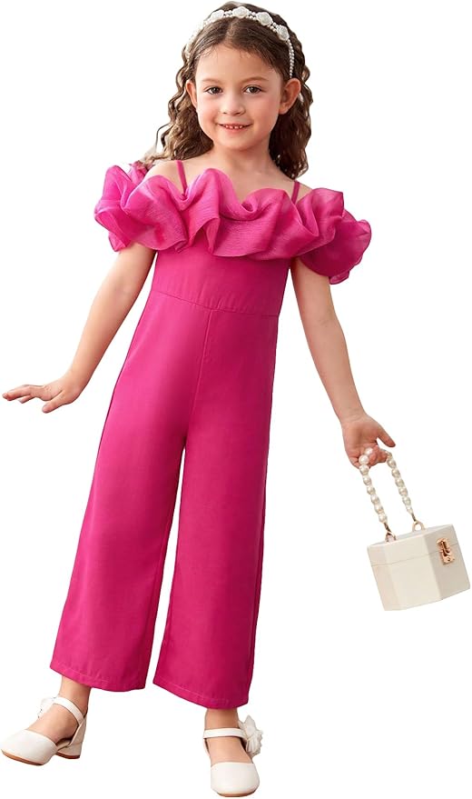 Toddler Girl's Ruffle Trim Straight Leg Cute Jumpsuit Cold Shoulder Short Sleeve Long Romper
