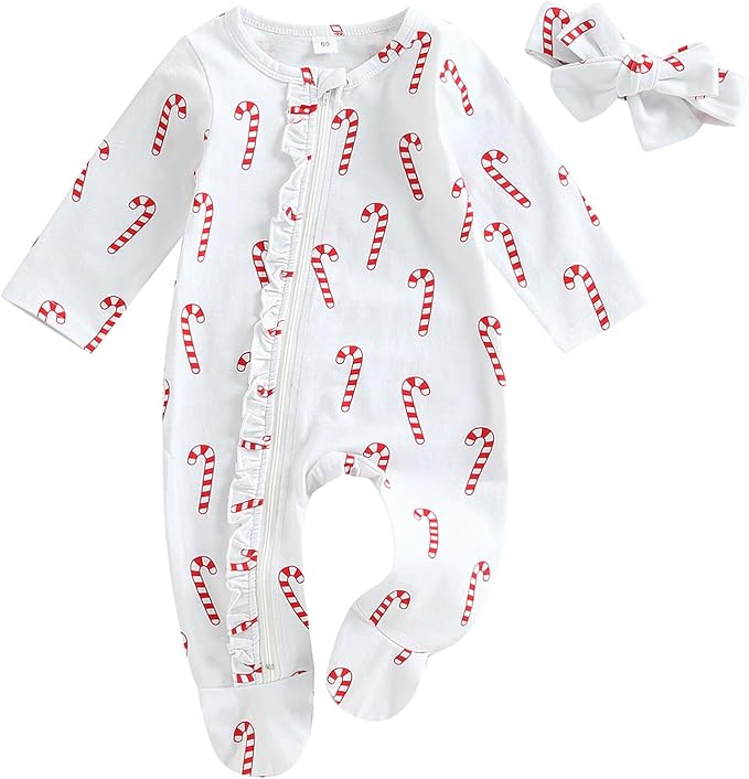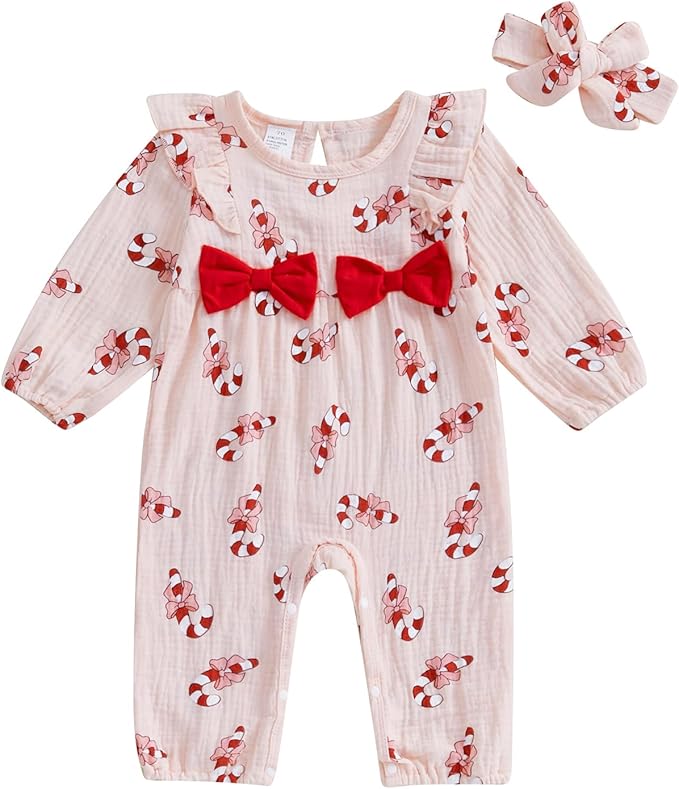 Infant Girl Candy Jumpsuit Fall Outfit Long Sleeve Ruffle Romper Gingerbread Playsuit Newborn Christmas Baby Clothes