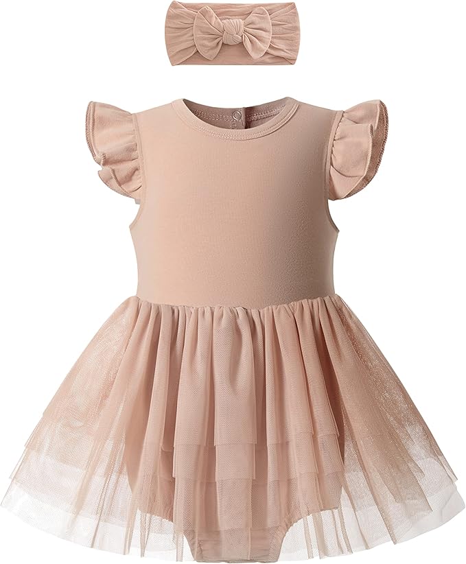 Organic Cotton Baby Girls Tutu Dress Baby's Tulle Dress with Headband Outfit Set 0-24Months